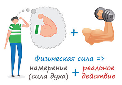 Организм человека не может функционировать без подпитки энергии через еду, дыхание, здоровый сон. Но одно лишь поступление физической энергии не даст ему силы, если эту энергию не тратить через физкультуру, спорт, грамотные физические упражнения. 33 года Илья Муромец в известной былине не владел руками и ногами, пока волхвы не заставили его собрать всю свою силу воли и принести им воды. В этой былине простым языком излагается великая истина о том, что именно осознанное волевое реальное действие способно дать нам непомерную мощь и здоровье, и это Действие должно быть инициировано не едой, не дыханием и, конечно же, не выпитой водой, а в первую очередь собственной силой духа.