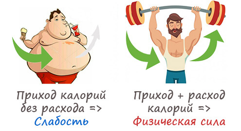 А для накопления физической силы есть только один способ – тренировка. И прежде всего под тренировкой подразумевается расход калорий, а не их накопление. Потому что накопление калорий – дело нехитрое, достаточно побольше есть и подольше спать. Но без сбалансированного расхода калорий это приведет лишь к ожирению, а накопить физическую силу можно только через расход потребленных калорий путем занятий физкультурой или спортом.